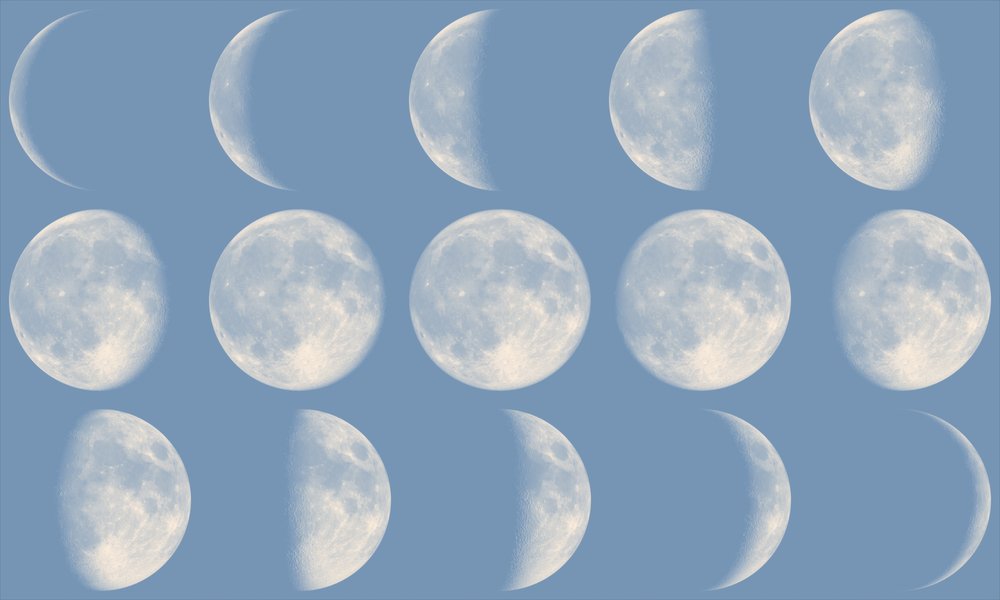 The 8 phases of the Moon in order are: